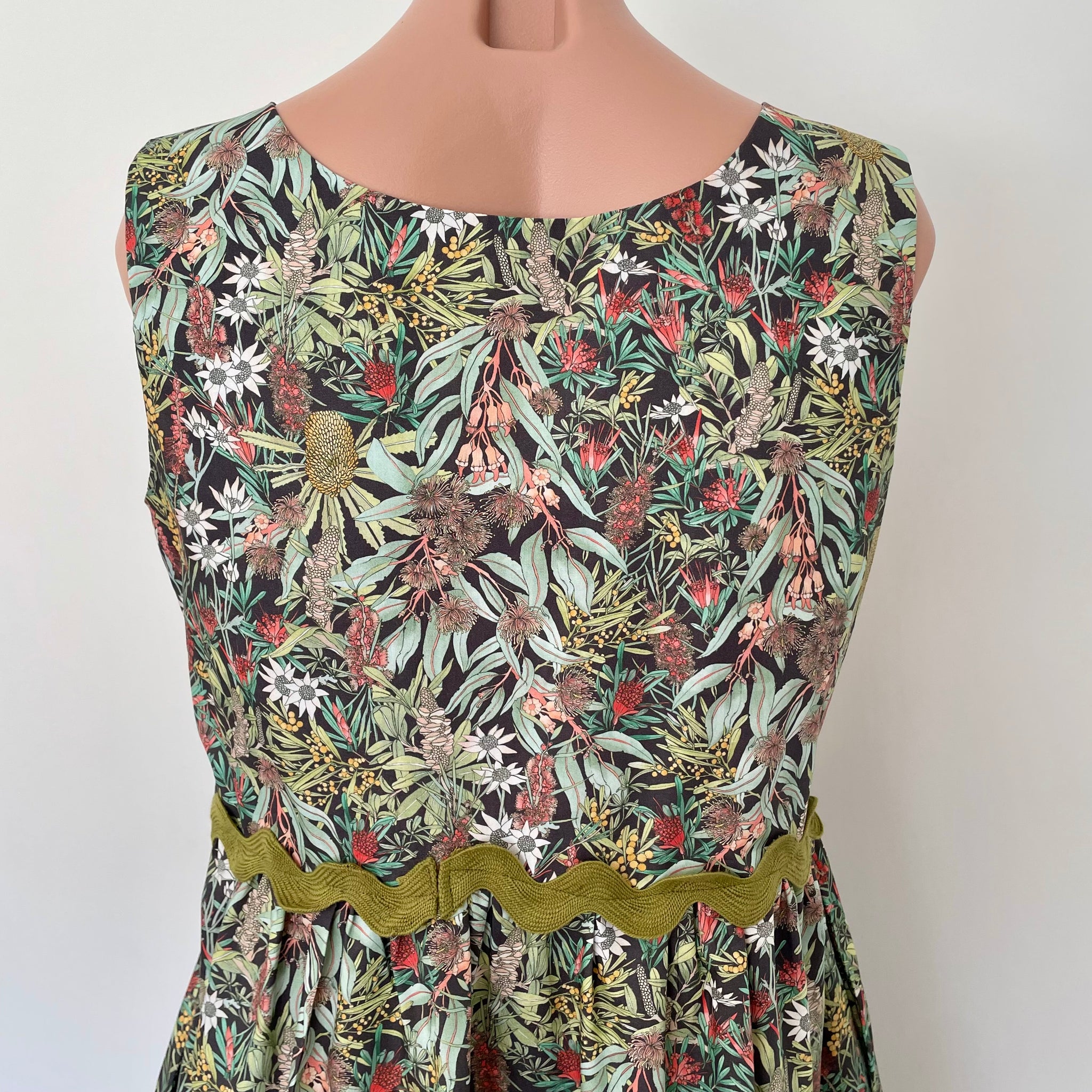 Cotton dress with lined bodice, Ric rac trim and pockets.