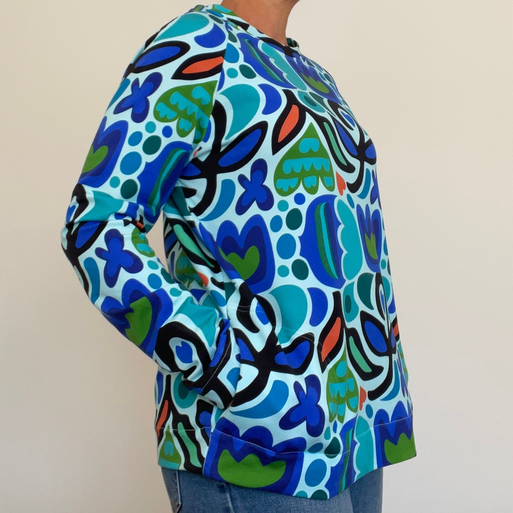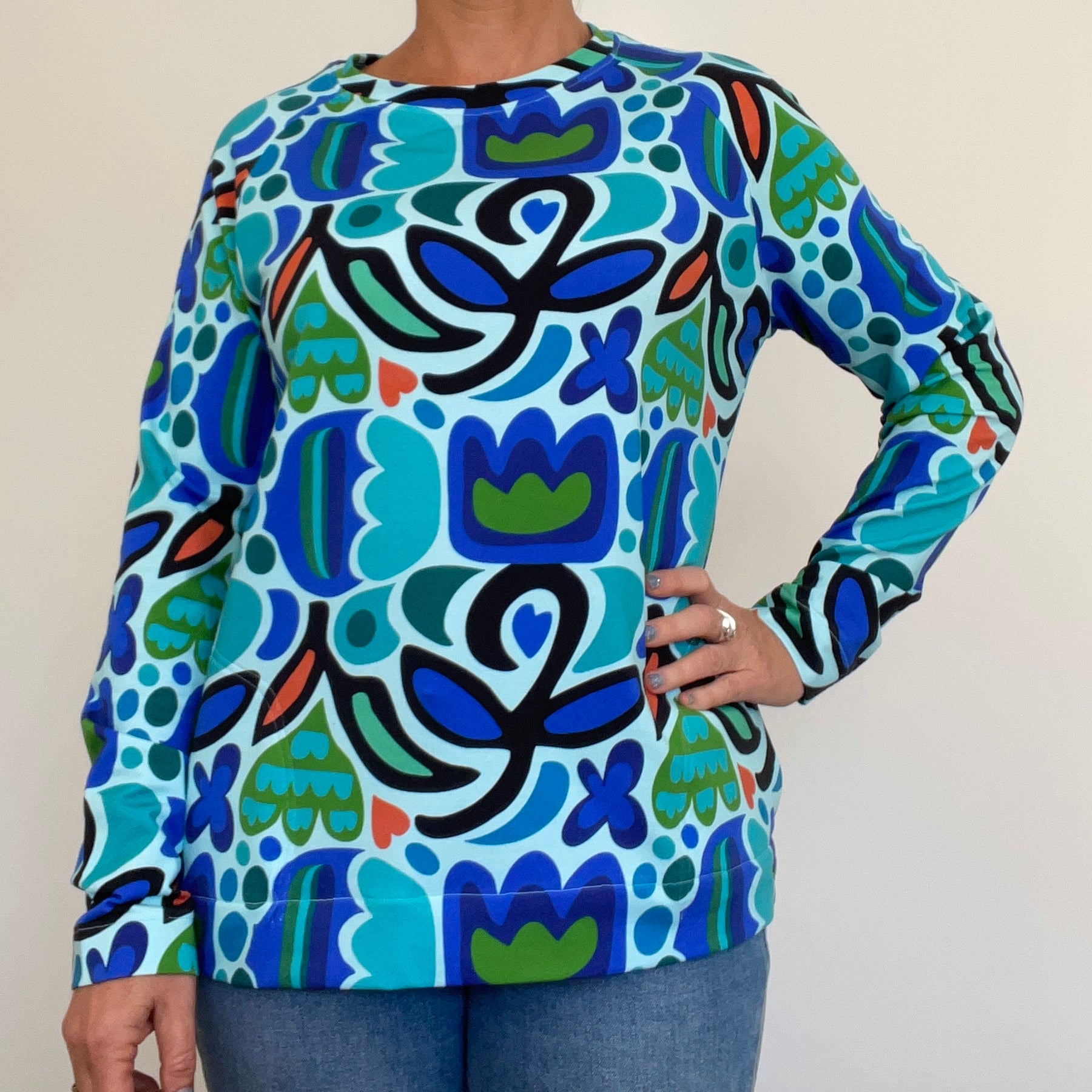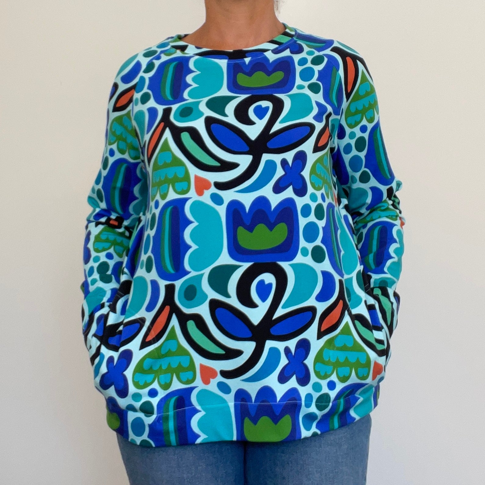 Cosy crew neck wind heater with in seam pockets.