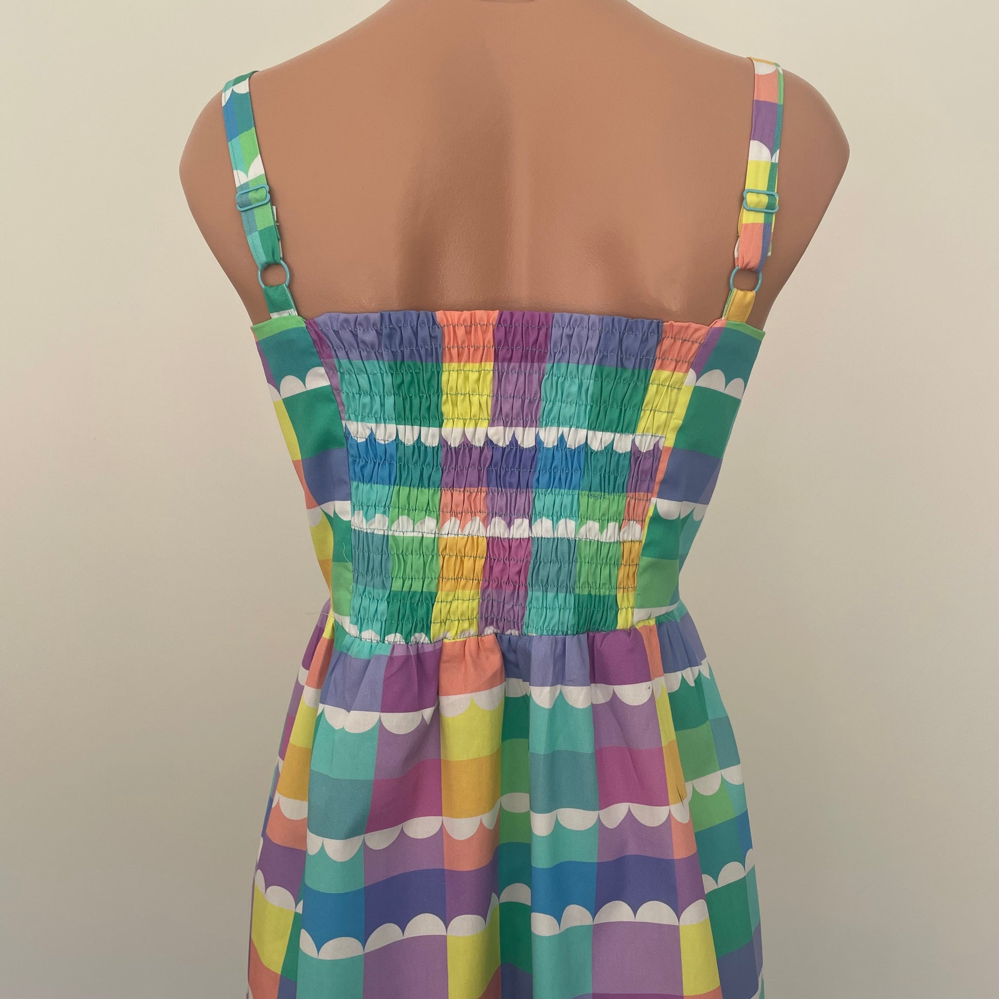 Button up Sun dress with lined bodice, front pockets and adjustable straps and shirring at the back.